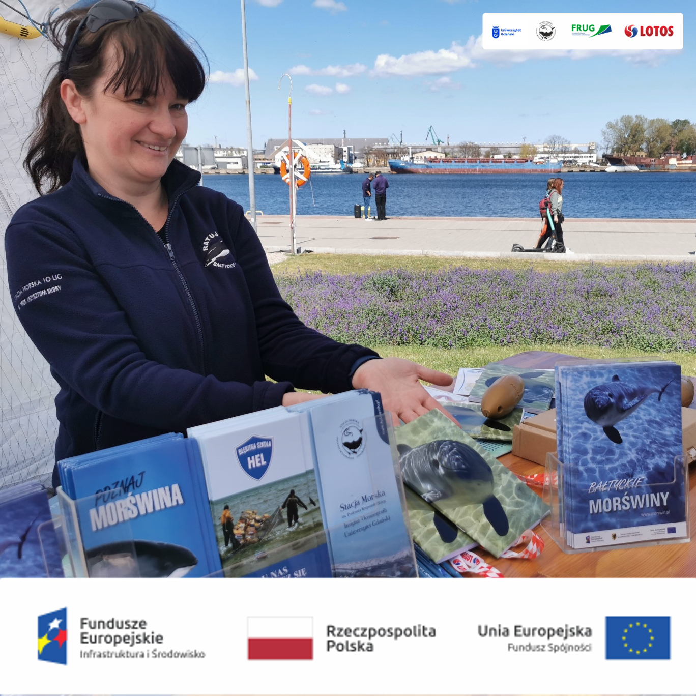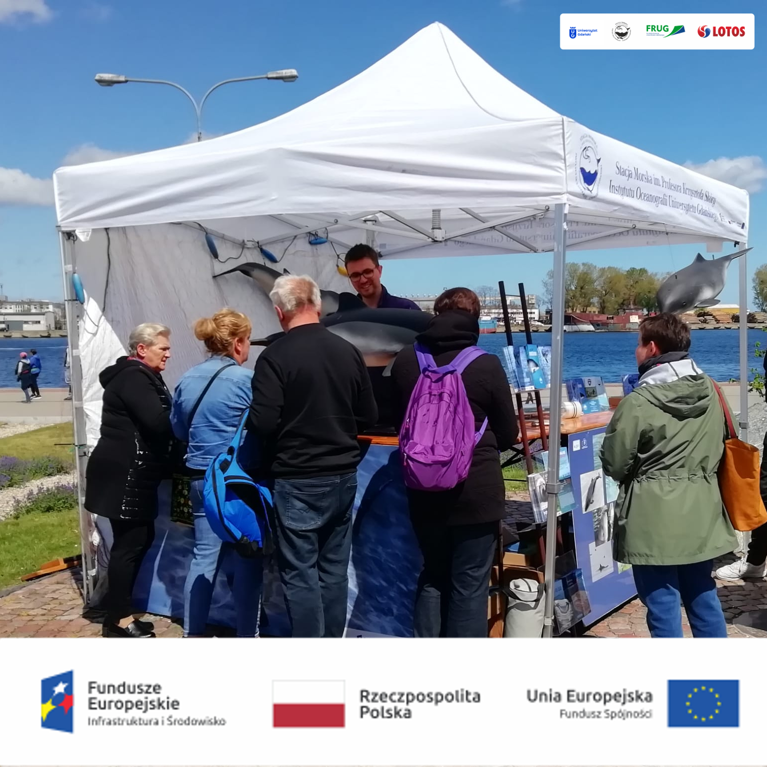 W niedzielę 15 maja br. na Skwerze Kościuszki w Gdyni przy pomniku morświna Edukatorzy Błękitnej Szkoły Fundacja Rozwoju Uniwersytetu Gdańskiego w Stacji Morskiej im. Profesora Krzysztofa Skóry Uniwersytetu Gdańskiego dzielili się wiedzą na temat biologii i ekologii bałtyckich morświnów, ich zagrożeń i sposobów ochrony. Nie zabrakło atrakcji dla najmłodszych, którzy odwiedzając stoisko mogli wziąć udział w grach edukacyjnych – ułożyć puzzle, domino czy zakręcić edukacyjnym kołem fortuny .